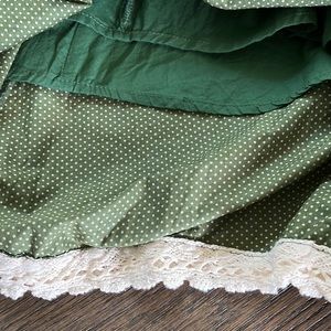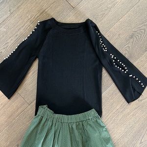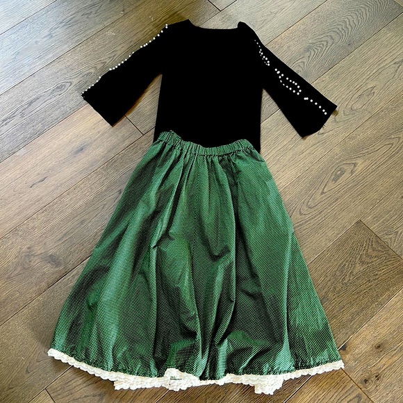The skirt is 100%cotton, the waist is elastic, the top is very elastic, and the sleeves are beaded.size:S-M,top brand new ,skirt worn once .