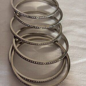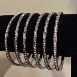 Beautiful set of 6 Crystal Bracelets in Silver Tone (size 8.5) with pouch