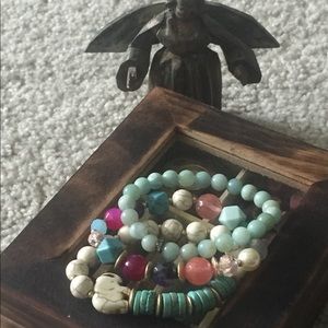 Set of Three bracelets handmade with real stones beads with accents in gold and elephant in white agate