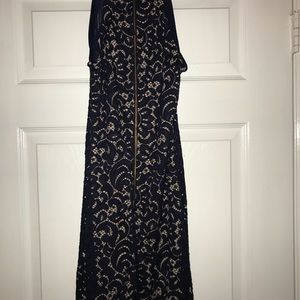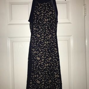 This homecoming dress is honestly so pretty! It’s a tight, dark navy blue and the brand is B. Darlin dress. Also has a gold zipper in the back. I’m 5’2 and am normally a size 2 but this fits great!! ONLY WORN ONCE