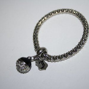 This is a beautiful silver tone charm bracelet with a J charm and black and rhinestone ball charm.