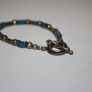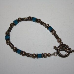 Beautiful silver and blue glass beaded bracelet with toggle clasp 7"