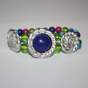 Beautiful silver and colorful beaded Chico's Bracelet with flowers 7"