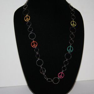 Beautiful silver and colorful peace sign necklace 28"