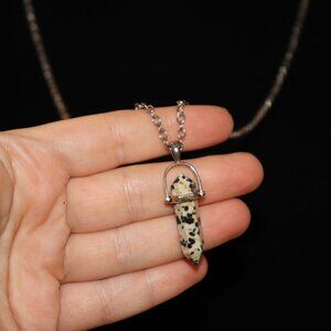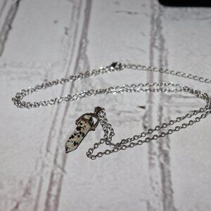 Beautiful silver and dalmatian jasper necklace natural stone 29-33"