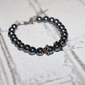 Beautiful silver and hematite beaded bracelet 7.5-9"