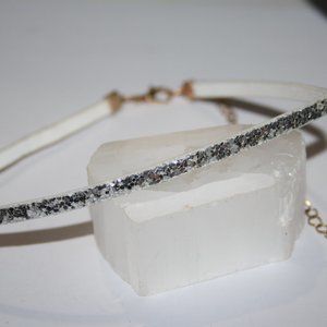 This is a beautiful silver glittery choker necklace. it's adjustable from 12.5-17" long