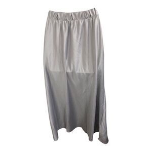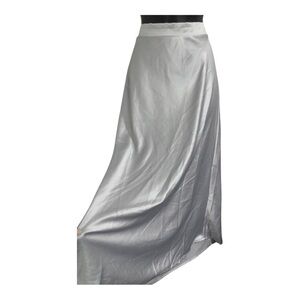 Beautiful silver metallic banded waist bias cut satin effect maxi skirt size Medium new