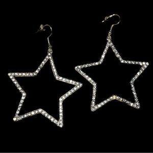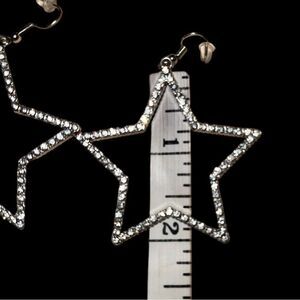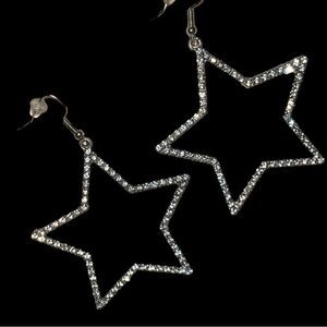 Really pretty on! Silver 2” star earrings encrusted with rhinestones!