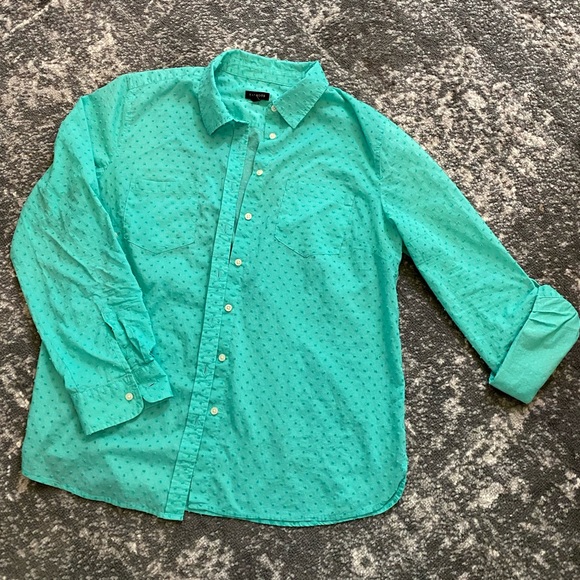 Beautiful and soft Talbots button down shirt. Textured with dots and double front pockets. Buttons for 3/4 length sleeves make this a versatile and easy to wear shirt. You’re going to love this spring and summer staple that’s great at work or at the farmers market.