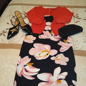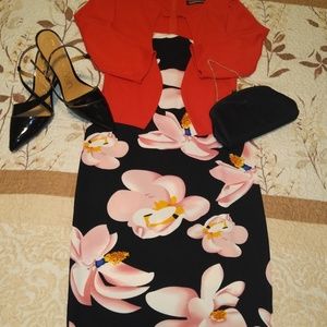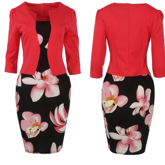 This is a one-piece set ideal for use for a formal work occasion a black dress with a pink floral pattern and a pink blazer give it the ideal touch to see your self sexi and very elegant brand new never wear
