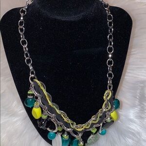 Beautiful statement necklace the colors are silver black green white yellow and tan