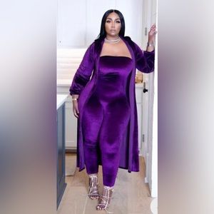 Questions? Leave a comment below! Beautiful strapless jumpsuit with matching Cardigan Jacket. Size Large