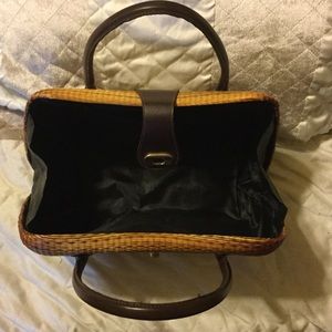Summer night out on the town..... Straw purse with brown handles, Gold hardware and black interior. Excellent condition. Priced to sell!