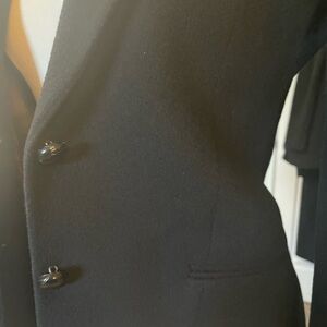 Beautiful structured fit cashmere wool blend black blazer. 2 button front.