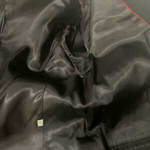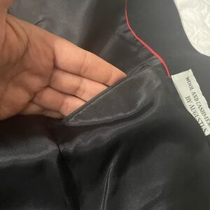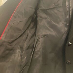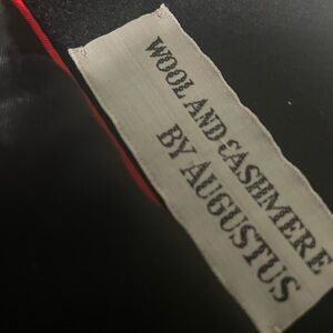 Luxurious fabric wool cashmere nice to the touch. 3 outside pockets, still tacked, one inside. Size tag reads 8 but fits more like a 4/6. Please see measurements. No signs of wear inside or out. Red interior piping.