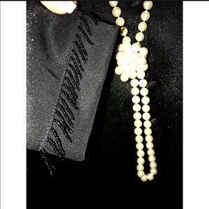 Beautiful stunning blazer with metallic threads. ONLY worn for a few hours. Has beaded cuffs. Great for VALENTINES DAY or just wearing with jeans for Date Night. Won’t be able to keep his eyes off you.