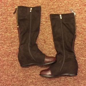 Brown beautiful suede wedge boots with nice zipper in the back and a leather strip in back...with leather toe size 38