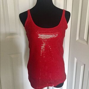 Shimmering red tank top by New York company size medium. Elastic for bra part and fully lined.
