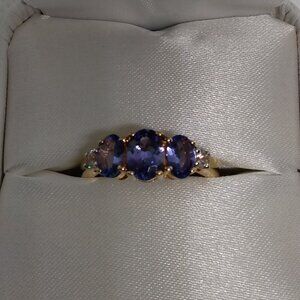 1.58ctw tanzanite ring, 18k yellow gold over 925 silver, diamond accents on each shoulder, fabulous ring! Comes with original box & it is stamped! Offers are welcome!  😉