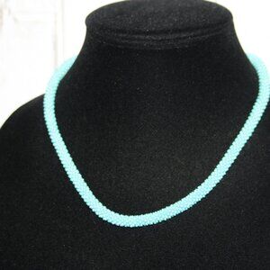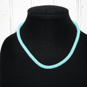 Beautiful teal glass beaded necklace with toggle clasp Made in Nepal 18"
