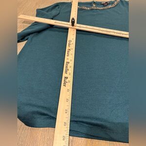 So beautiful! Dark teal / greenish peacock blue sweater Detailed neckline / ‘jewels’ Xl Lightweight Excellent condition