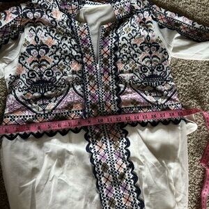 White with navy blue embroidery