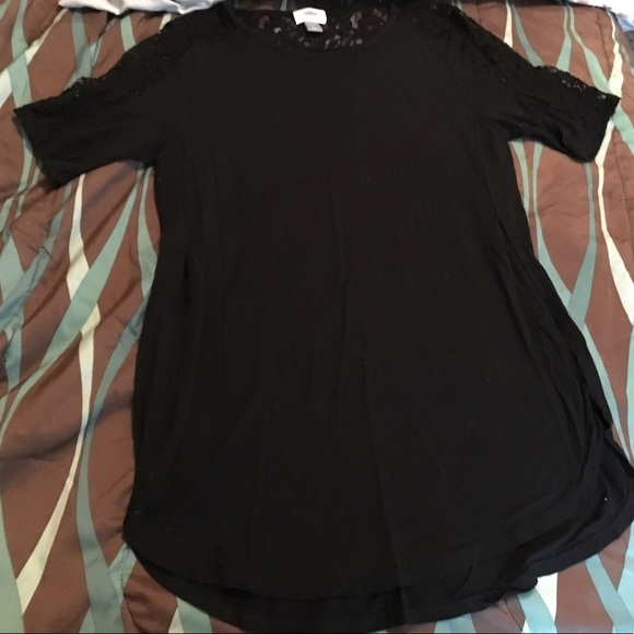 Black tunic with lace on the top and slits on the sides! (See picture 5) tiny hole that can easily be sewn.