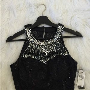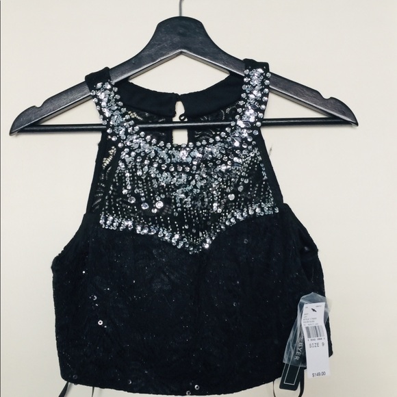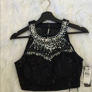 Beautiful black. Lace Embellished Crystal/ Stone Prom top Very expensive selling cheap Open to all reasonable offers the tag says size 9 but it fixes me I’m a 2 / 4