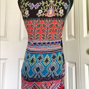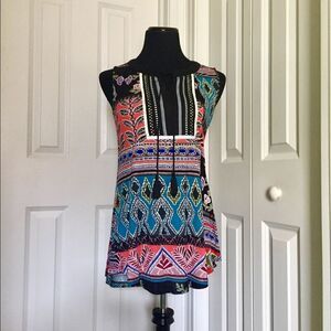 Beautiful top with some folkloric influence. Little wider at the bottom. Closes with a black cord. Made by RXB size small. 100% Rayon.