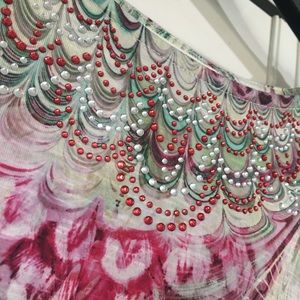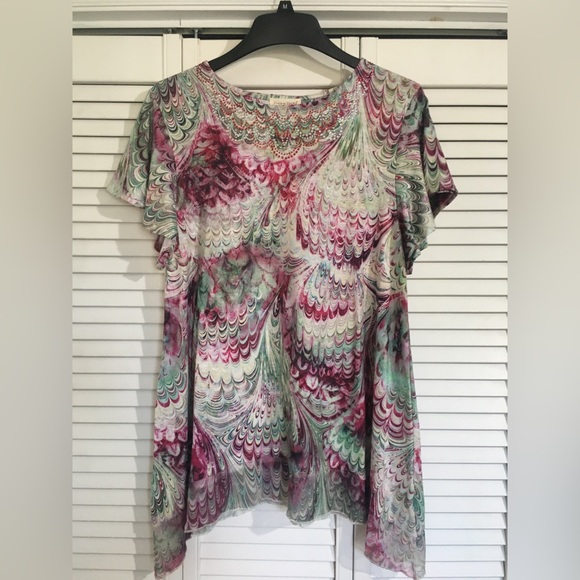 Jade cranberry and cream colored tunic decorative neckline. Like new.
