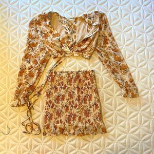 Adjustable low cut top, and super stretchy bottoms. Never worn so in excellent condition