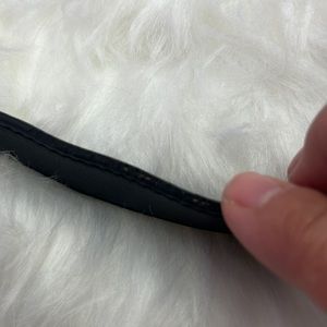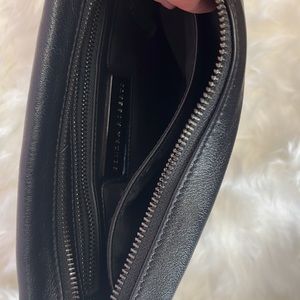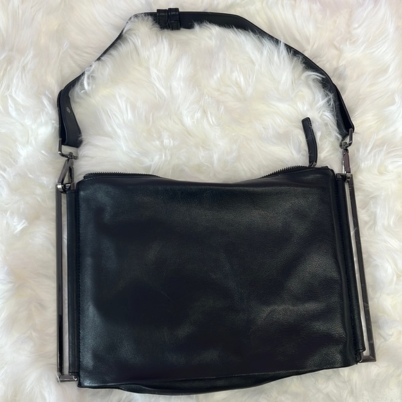 Great condition clutch purse with metal hardware on side. 3 pockets, 13 1/2 long by 9 in tall. One ruff blemish on handle. Tried to picture.