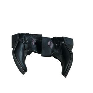 Beautiful unique VINTAGE Harley Davidson Wolverine Morgan heeled boots Black with pink stitching Genuine leather size 10 USA