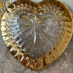 Beautiful vintage crystal gold trim heart shaped candy dish, great shape, 7.5x7