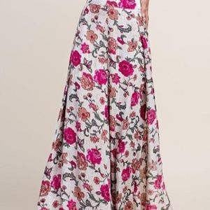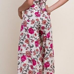 Beautiful vintage floral print set with slit Dress/Pant design. Top is crop with lace-up tie detail in back