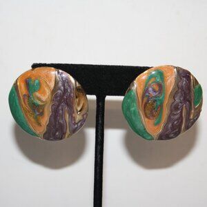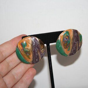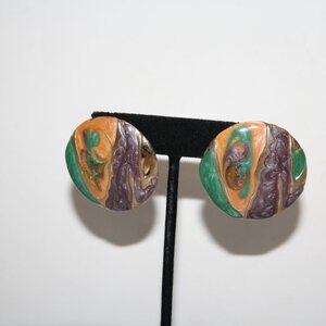 Beautiful vintage gold, purple, green and cream post earrings 1.5" tall