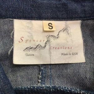 Beautiful vintage skirt and western shirt. Size small on the shirt and the skirt says one size fits all because it has an elastic waste. The second is made by Spencer Creations in the USA. The set is in perfect condition and it is a dark denim blue. Sometimes the photos don’t show the exact color. The measurements of the shirt buttoned up pit to pit is approximately 20 inches. The length of the shirt is approximately 28 inches. The sleeve length of the shirt is approximately 23 inches. The shirt does have shoulder pads. The skirt has and elastic waist band and without stretch measures from side to side about 12 inches, but will stretch for five more inches. The skirt is very full. The length of the skirt is approximately 33 inches long. I do have a couple western belts that I will include in this purchase. If you have any questions, please contact me. This set would look great with a pair of cowboy boots.