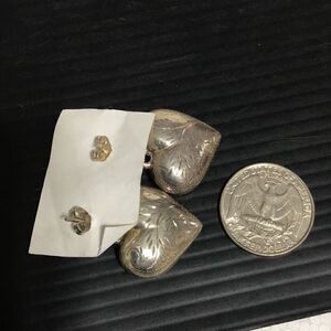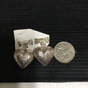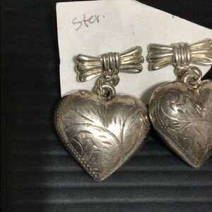 Beautiful vintage bow and quarter size heart sterling, silver earrings