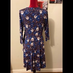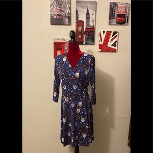 Beautiful v-neck l/sleeve floral blue dress size L