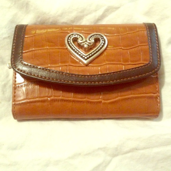 Brown with silver heart decor, plenty of room, smallest than an actual wallet :)