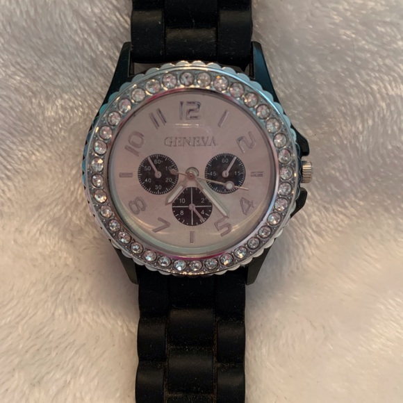 Beautiful Silicone watch in BLACK color, excellent condition, silver tone hardware, needs battery