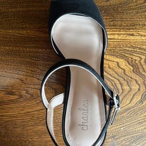 Stunning black wedges! Microsuede used. Comes with box! Clean! Sold as is!