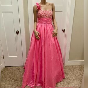 Beautiful Beaded and Sequined, One-shoulder Ruffled Ball Gown