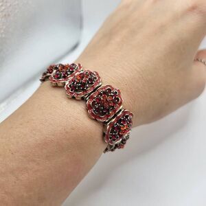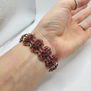 Beautiful Bohemian Red Enamel and Rhinestone Bracelet