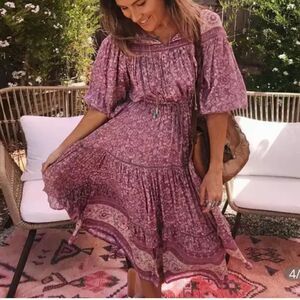 Vintage style hippie dress mulberry purple, floral, and long sleeves.