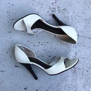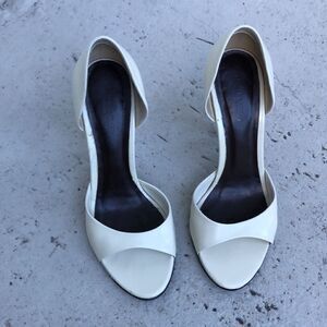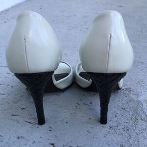 These are absolutely beautiful hills. I just had a creamy white re-stained so they look brand new. Check out the pictures the heel measures almost 4 inches and is a nice leather weave.