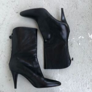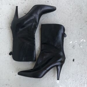 Made in Italy beautiful leather midcalf boots. Please look at the pictures has one boot has a mark on the toe but I showed him pictures. Heel height is 3 1/2 inches shaft. Height is 9 inches and measures 5.5 across. Absolutely beautiful shoes.