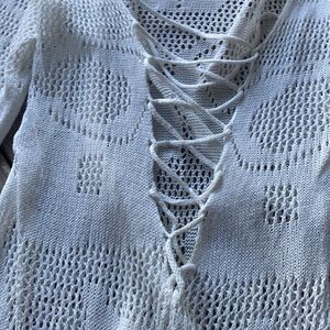 This dress is gorgeous with beautiful detail and a lace up chest. This is crochet and very well done.