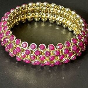 This is a high quality metal stretch bracelet with faux Ruby appearance.